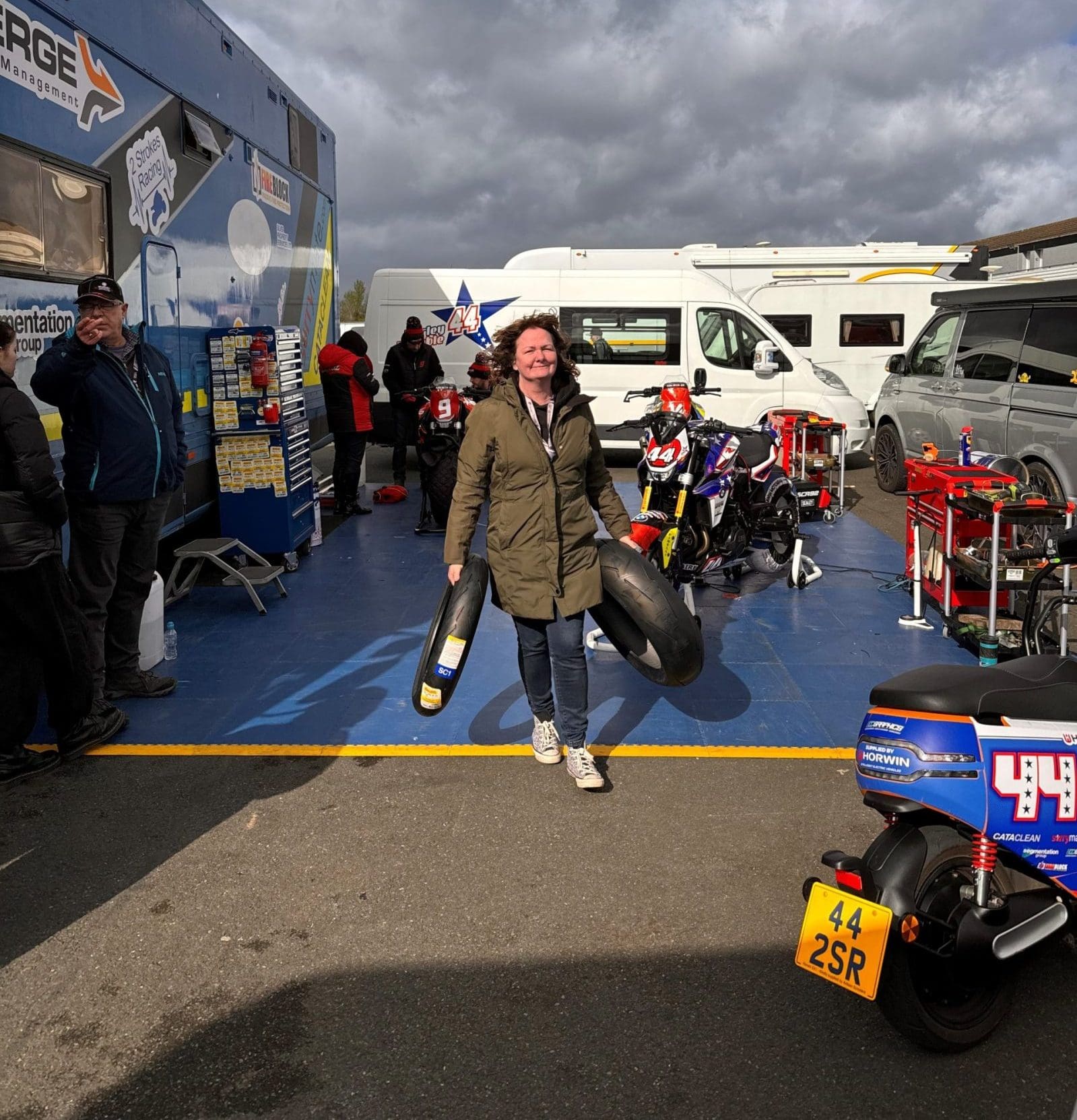From erecting awnings, unloading tool kits, applying tyre warmers and finding on site mechanics to weld bent forks, there’s no end of action behind the scenes to get both the riders and the bikes into peak condition.