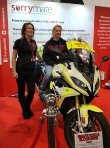 The stars were present across the entire MCL show. Jenny Tinmouth (above right) came over to the Sorrymate stand and took a seat aboard out V4 SMIDSY sponsored Blood Bike.